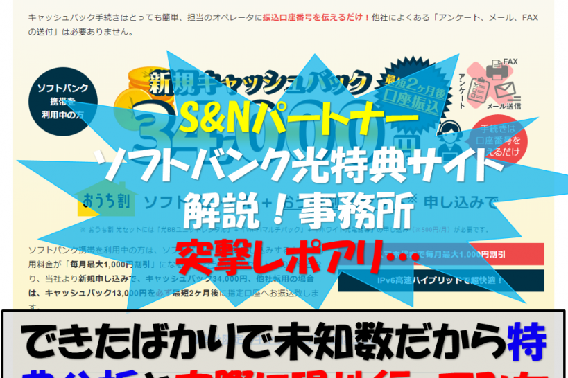 【突撃S&Nパートナー】ソフトバンク光サイトを解説【評判】